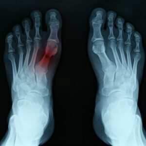 X-rays of a single ankle joint taken from front to back (AP) and from the side (LAT).
