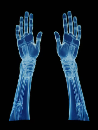 The patient positions both wrists as directed. The Radiographer takes images from multiple angles.