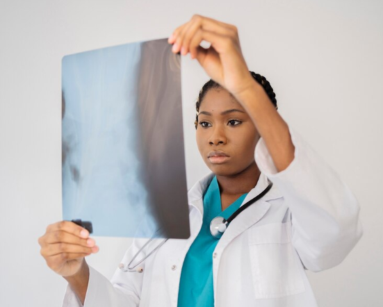 The patient bends their neck forward and backward as directed. The Radiographer takes X-rays in both positions.