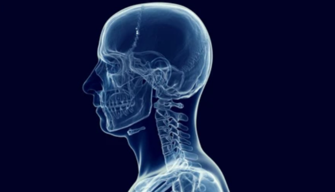 The patient sits or stands and positions the head as directed. The Radiographer takes the X-ray of the skull.